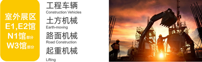 最具規模的工程車輛/土方機械/路面機械/起重機械等展區(黃色),集結了包括徐工集團、三一集團、中聯重科、山東臨工、龍工、山推、鐵建重工、鼎力、雷沃在內的一眾國內標桿廠商共襄盛舉,將共同呈現中國工程機械企業的非凡實力與最新發展;與此同時,國際知名企業卡特彼勒、維特根、美卓、特雷克斯、曼尼通、馬尼托瓦克、寶馬格、安邁、斯凱杰科、歐歷勝、海德寶萊等也將攜其前沿技術與創新產品同臺亮相,更有德國、意大利、土耳其三國企業以組團形式參展。